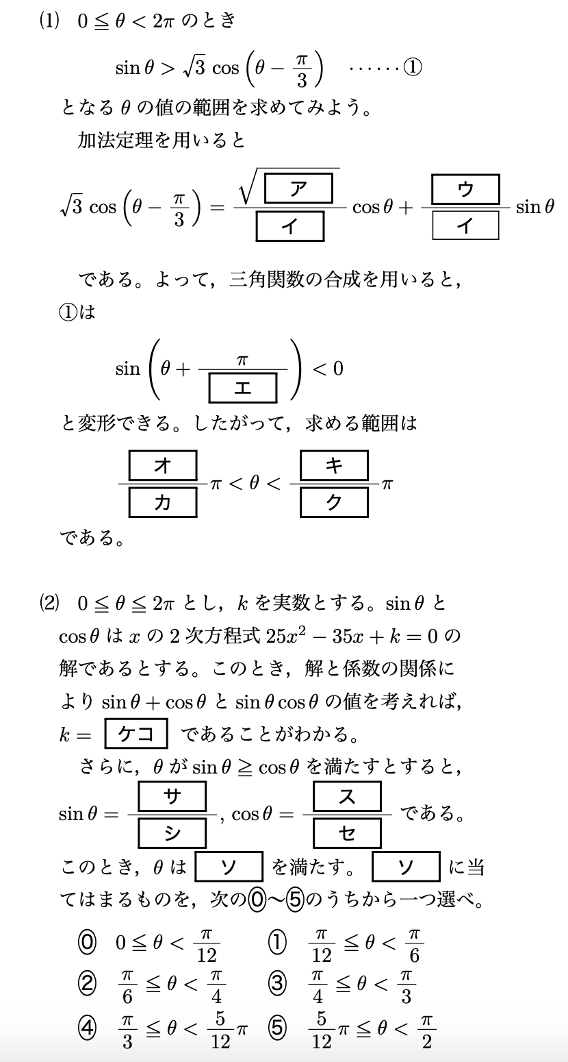 21sinθ+23cosθ=sin(θ+α)$ただしαはsinα=23,cosα=21を満たす実数)