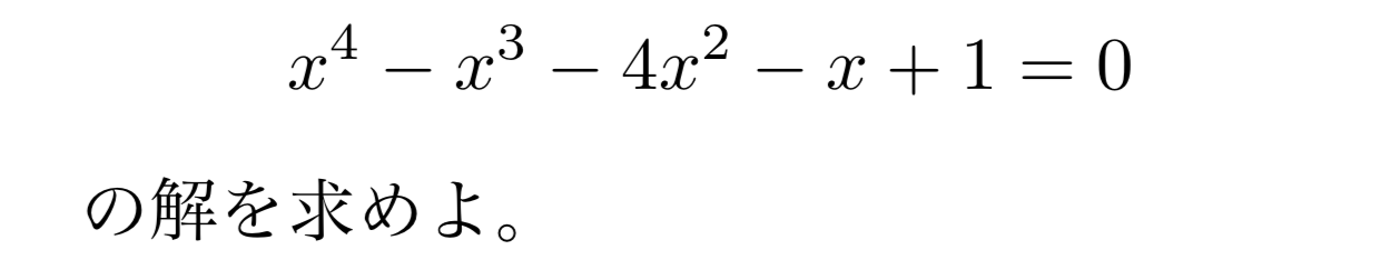 以下の4次相反方程式を例として解き方を説明していきます!