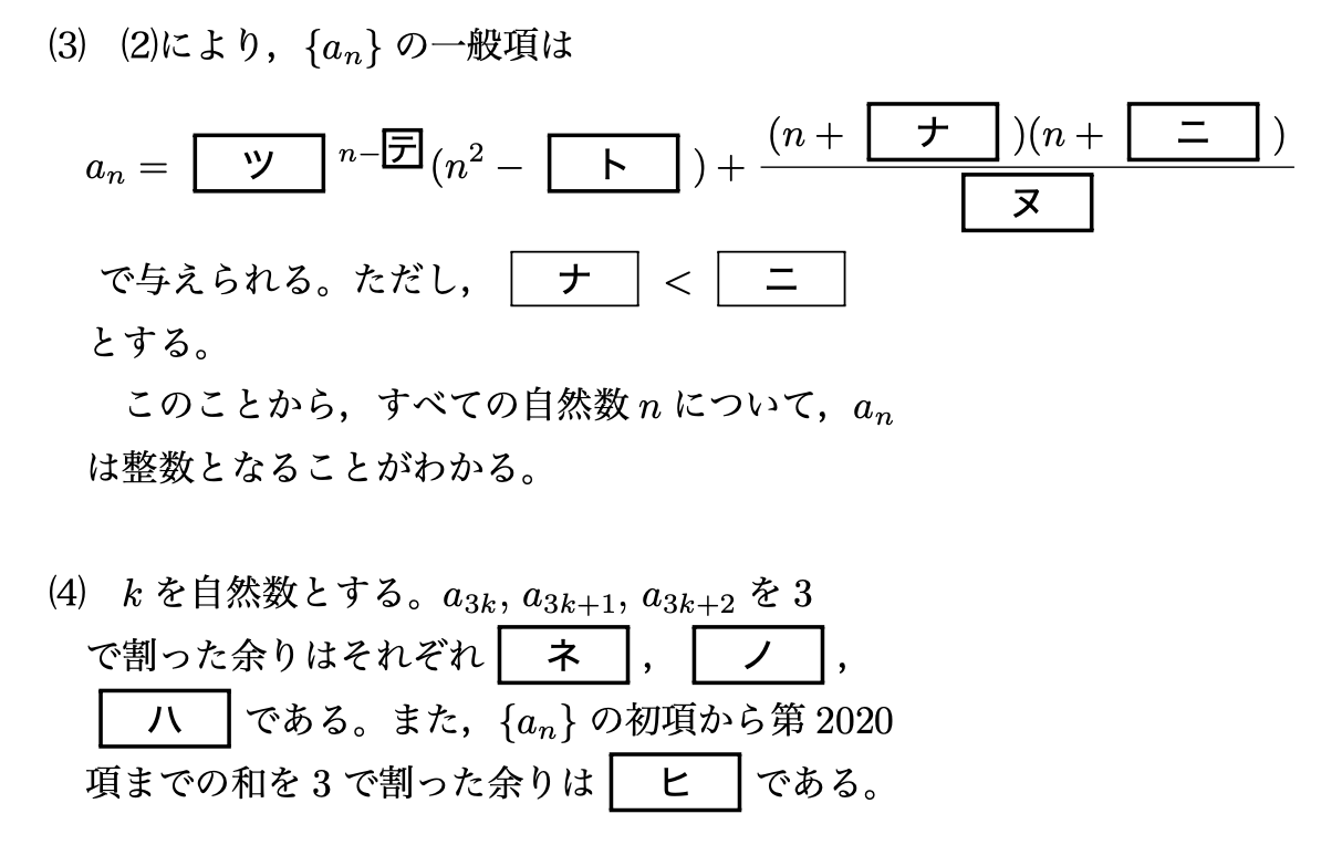 とanの一般項が求まりました!最初はすごく複雑な漸化式で面食らったかと思いますが、流れに乗って計算していくとちゃんと一般項が求まって嬉しいですね。