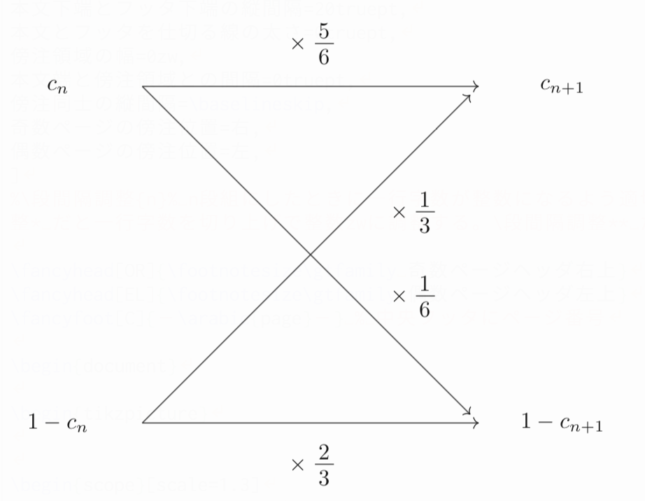 あとは、遷移図を描いて、漸化式を立てて、それを解いてあげれば確率が求まります。