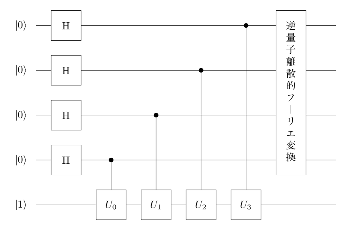 図の中で・がいくつも並んでいますが、これは量子アルゴリズムの基礎で説明したコントロールビットを表しています。