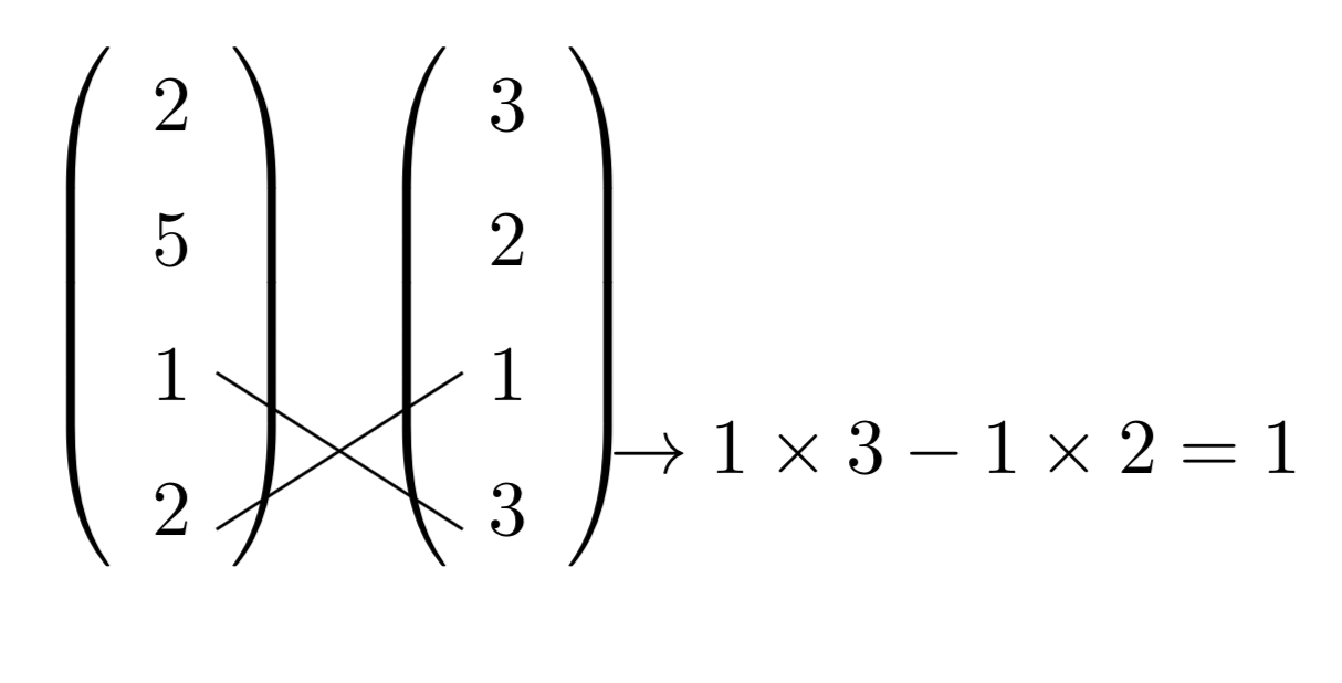 という2つのベクトルの外積の成分を求めたいときには、「成分以外のたすき掛け」をすればよく、