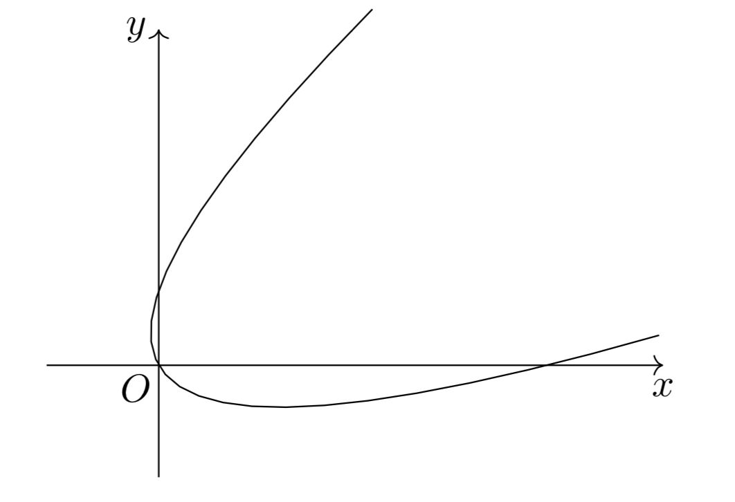したがって、点P(x,y)が描く曲線は以下の太線部。(ただし黒丸を含む。)