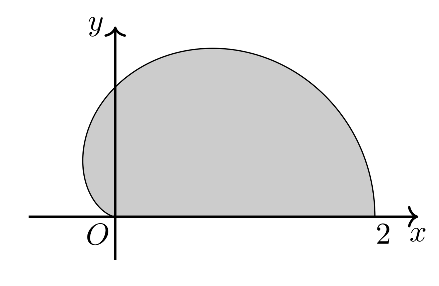 よって、0≦t≦2πの範囲の曲線とx軸、y軸で囲まれた図形は以下のようになる。