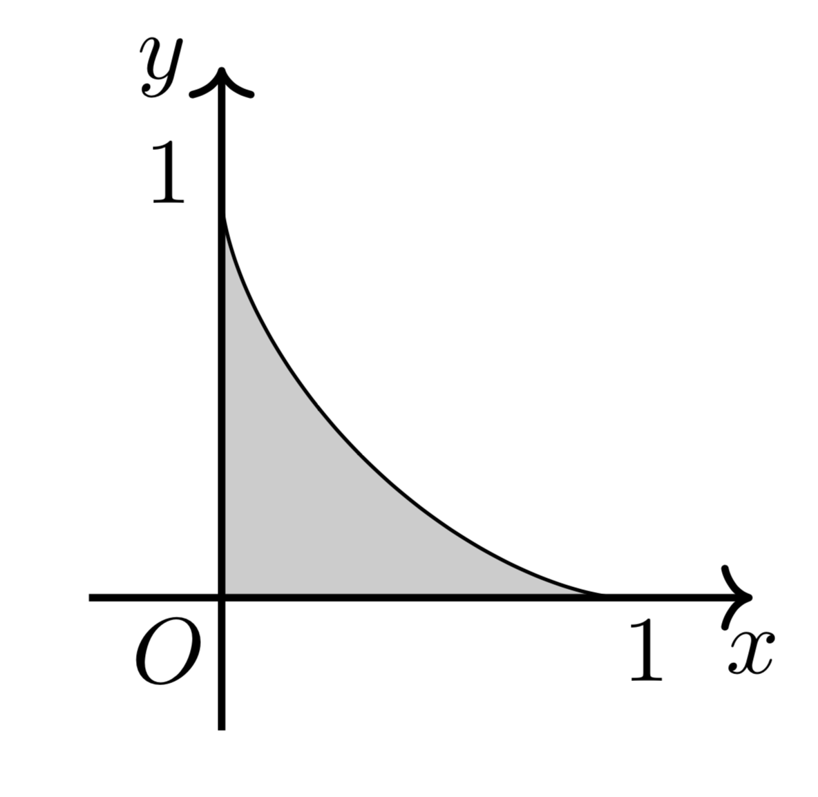 積分区間は先ほどグラフの概形を描いたことによって分かるはずです。