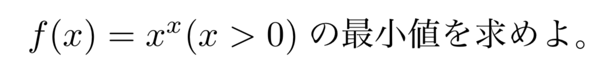f(x)=xx(x>0)とおくと、これは常に正であるから、両辺に自然対数を取ることができて、