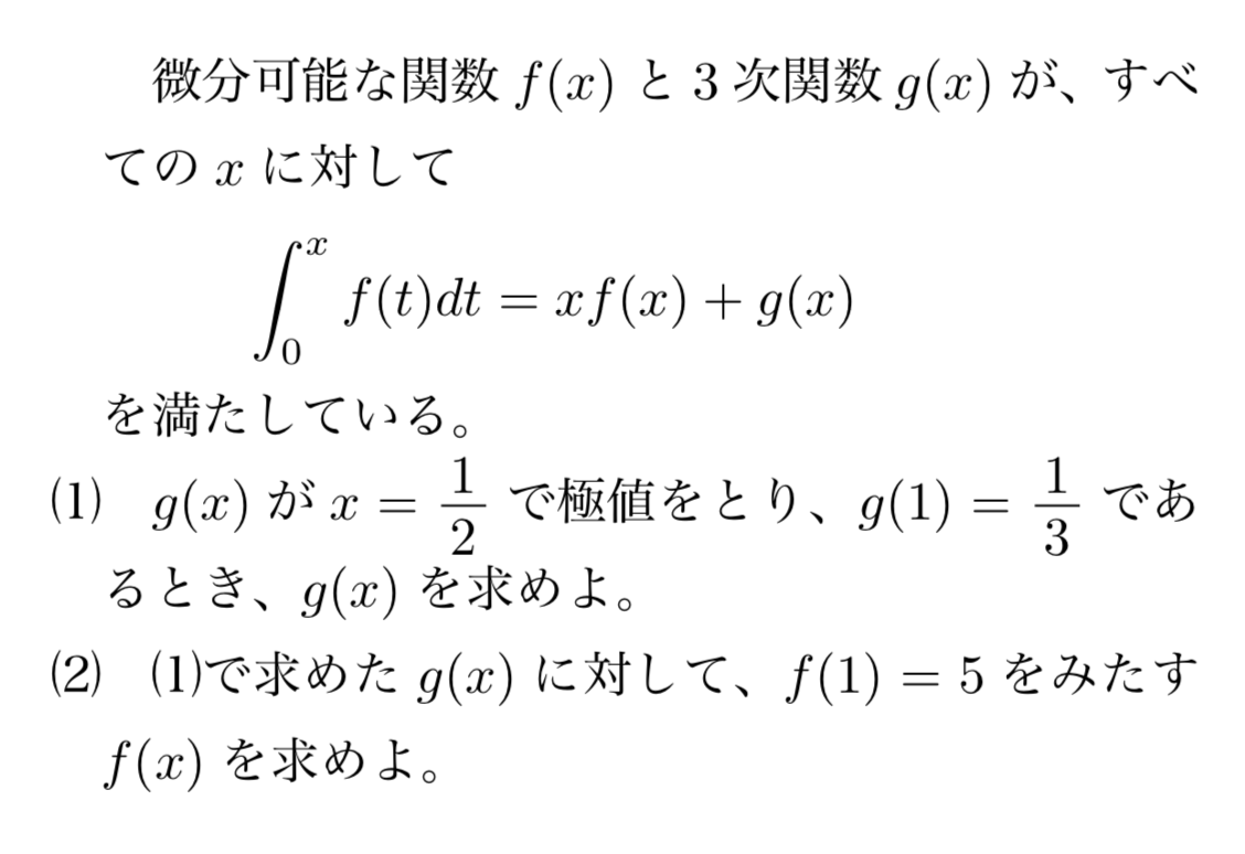の2つの作業をやるだけです。また、今回g(x)が3次関数であるという条件も忘れないようにしましょう。