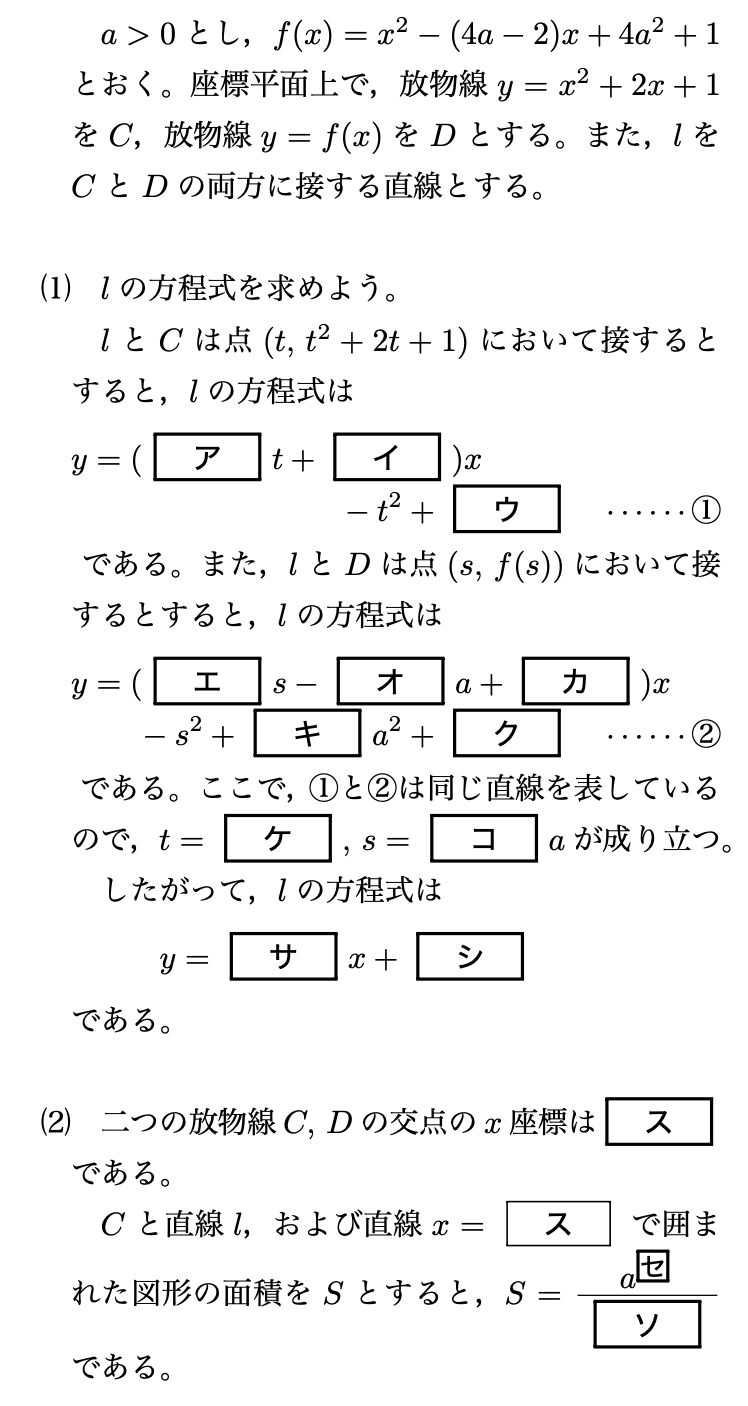 a≧21という条件は、Dとlの接点が0≦x≤1の範囲に入らないようにするために付いているのも分かるでしょう。
