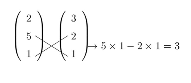 という2つのベクトルの外積の成分を求めたいときには、「成分以外のたすき掛け」をすればよく、