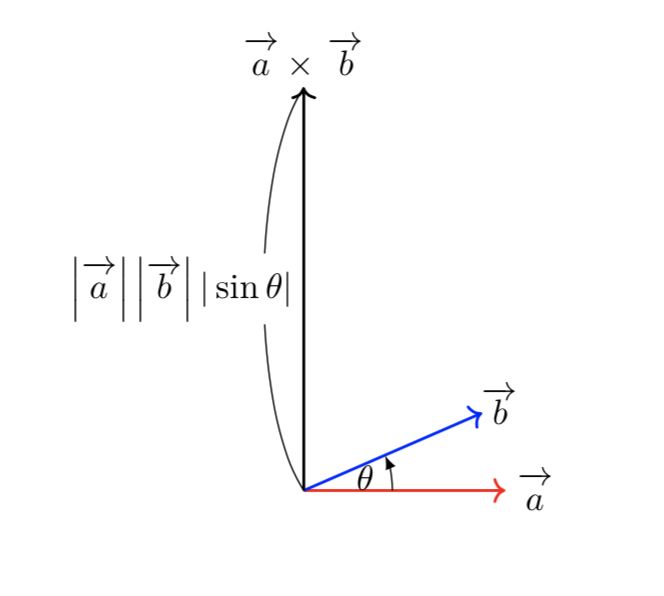 ベクトルの外積とは、空間において2つのベクトルが与えられたときに、2ベクトルのなす角をとすると、両方のベクトルに垂直な大きさがのベクトルのことを指します。